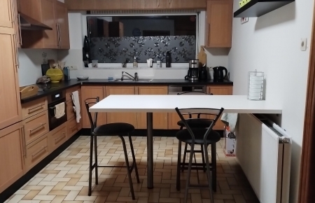 De multifunctionele open keuken vormt het hart van de woning en sluit naadloos aan op de leefruimte. Dankzij vloerverwarming, zonnepanelen en een zonneboiler geniet u van een lage energiekost, bevestigd door een gunstige EPC-score B en de aanwezigheid van digitale tellers.